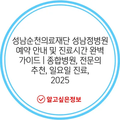 성남순천의료재단 성남정병원 예약 공지 및 진료시간 완벽 설명서 | 종합병원, 전연락 추천, 일요일 진료, 2025 에 대해 자주 묻는 질문 TOP 5