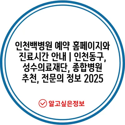 인천백병원 예약 홈페이지와 진료시간 공지 | 인천동구, 성수의료재단, 종합병원 추천, 전연락 정보 2025 에 대해 자주 묻는 질문 TOP 5