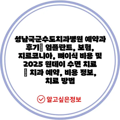 성남국군수도치과병원 예약과 후기| 임플란트, 보험, 지르코니아, 뼈이식 비용 및 2025 원데이 수면 치료 | 치과 예약, 비용 정보, 치료 방법에 대해 자주 묻는 질문 TOP 5