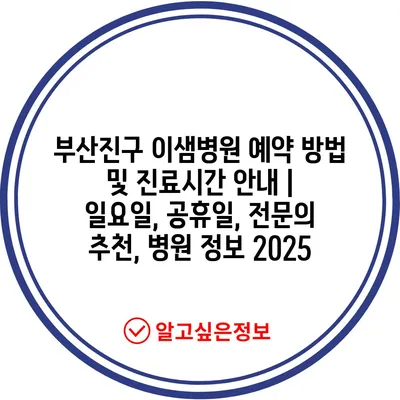 부산진구 이샘병원 예약 방법 및 진료시간 공지 | 일요일, 공휴일, 전연락 추천, 병원 정보 2025 에 대해 자주 묻는 질문 TOP 5