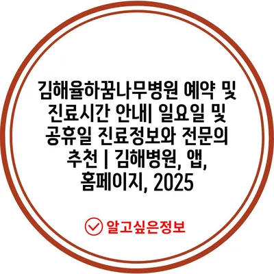김해율하꿈나무병원 예약 및 진료시간 공지| 일요일 및 공휴일 진료정보와 전연락 추천 | 김해병원, 앱, 홈페이지, 2025 에 대해 자주 묻는 질문 TOP 5