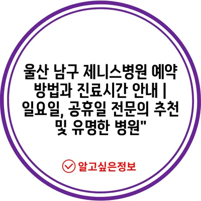 ✅ 울산 남구 제니스병원 예약 절차를 자세히 알아보세요.