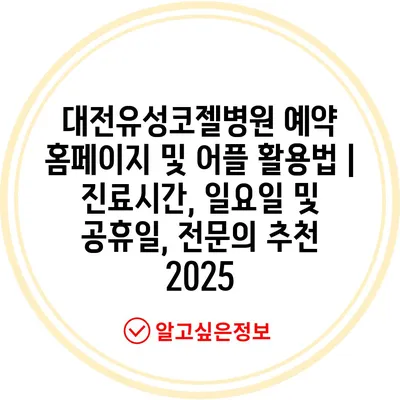 ✅ 대전유성코젤병원의 진료시간과 예약 방법을 자세히 알아보세요.