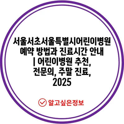 ✅ 서울 서초 어린이병원의 진료시간과 예약 방법을 자세히 확인해 보세요.