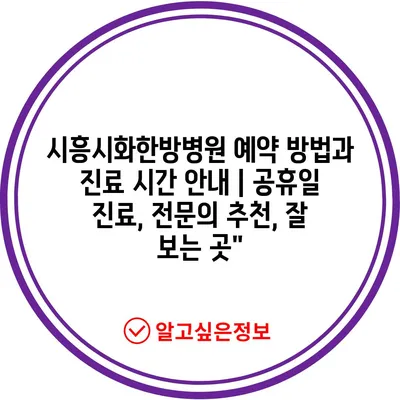 시흥시화한방병원 예약 방법과 진료 시간 안내 | 공휴일 진료, 전문의 추천, 잘 보는 곳”