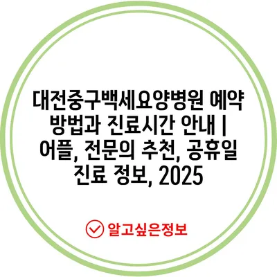 대전중구백세요양병원 예약 방법과 진료시간 안내 | 어플, 전문의 추천, 공휴일 진료 정보, 2025