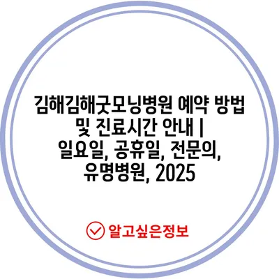 ✅ 김해김해굿모닝병원의 예약 방법과 진료 시간을 자세히 알아보세요!