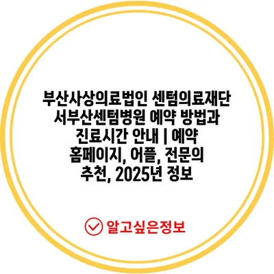 ✅ 서부산센텀병원의 예약 절차와 진료시간을 자세히 알아보세요.