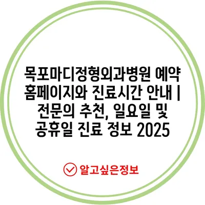 목포마디정형외과병원 예약 홈페이지와 진료시간 공지 | 전연락 추천, 일요일 및 공휴일 진료 정보 2025 에 대해 자주 묻는 질문 TOP 5