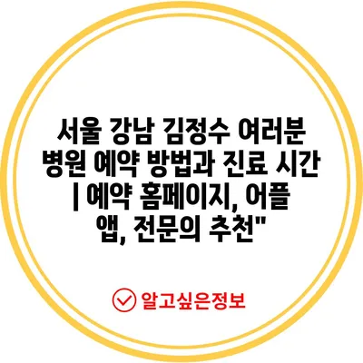서울 강남 김정수 여러분 병원 예약 방법과 진료 시간 | 예약 홈페이지, 어플 앱, 전문의 추천”