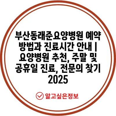 부산동래준요양병원 예약 방법과 진료시간 공지 | 요양병원 추천, 주말 및 공휴일 진료, 전연락 찾기 2025