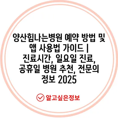 ✅ 양산힘나는병원 예약 방법과 앱 기능을 한눈에 알아보세요.