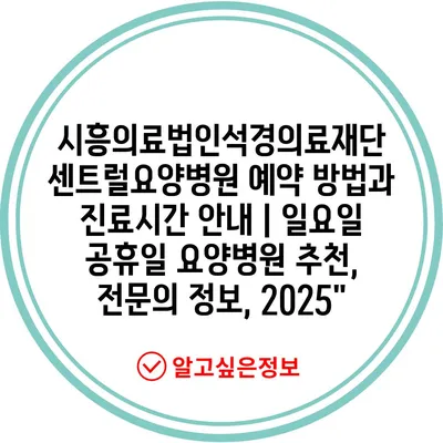 ✅ 시흥의료법인 센트럴요양병원의 예약 방법과 진료시간을 지금 바로 알아보세요!