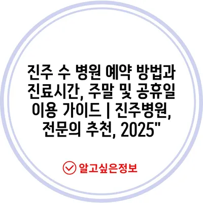진주 수 병원 예약 방법과 진료시간, 주말 및 공휴일 이용 가이드 | 진주병원, 전문의 추천, 2025″