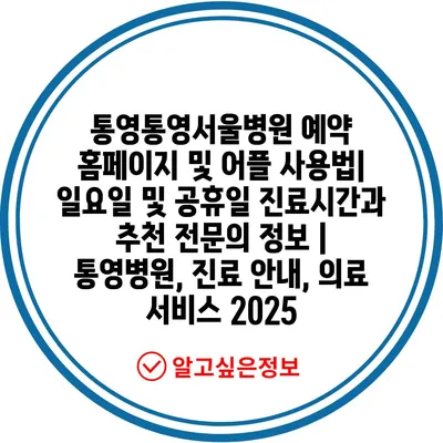 통영통영서울병원 예약 홈페이지 및 어플 사용법| 일요일 및 공휴일 진료시간과 추천 전연락 정보 | 통영병원, 진료 공지, 의료 서비스 2025 에 대해 자주 묻는 질문 TOP 5
