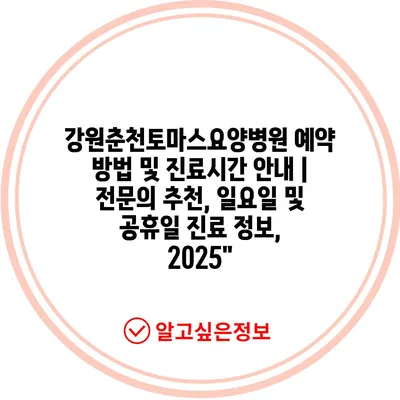 강원춘천토마스요양병원 예약 방법 및 진료시간 공지 | 전연락 추천, 일요일 및 공휴일 진료 정보, 2025