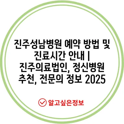 ✅ 진주성남병원의 예약 방법과 진료 시간을 지금 바로 알아보세요.