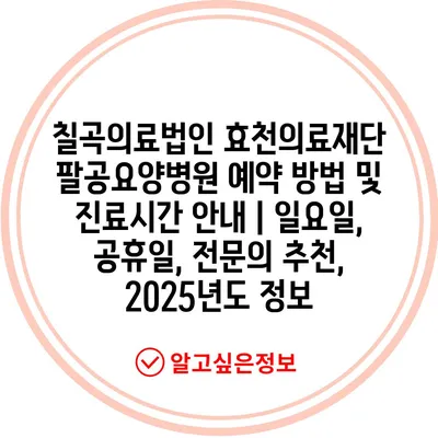 칠곡의료법인 효천의료재단 팔공요양병원 예약 방법 및 진료시간 공지 | 일요일, 공휴일, 전연락 추천, 2025년도 정보 에 대해 자주 묻는 질문 TOP 5