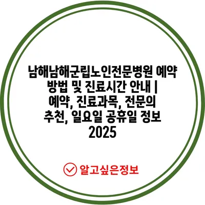 남해남해군립노인전문병원 예약 방법 및 진료시간 공지 | 예약, 진료과목, 전연락 추천, 일요일 공휴일 정보 2025 에 대해 자주 묻는 질문 TOP 5