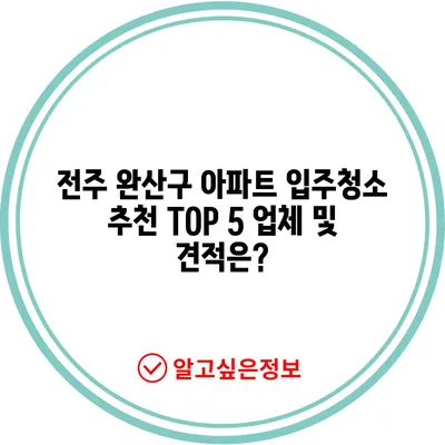 전주 완산구 아파트 입주청소 TOP 5 업체 추천 및 견적에 대해 알아보려는 분들을 위한 심도 깊은 블로그 포스트입니다. 이 포스트는 전주 완산구에서 아파트 입주청소를 계획하는 고객들에게 유용한 정보를 제공하며, 각 업체의 특징과 견적을 비교하여 자신의 상황에 맞는 업체를 선택하는 데 도움을 주고자 합니다.