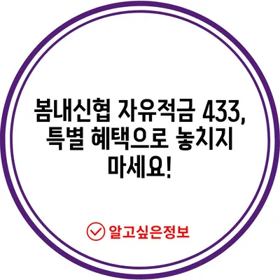 봄내신협 자유적금 433, 특별 혜택으로 놓치지 마세요!