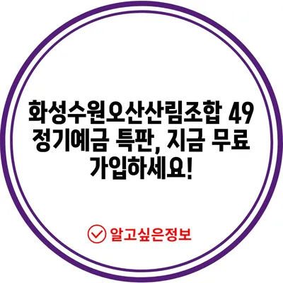 화성수원오산산림조합 49 정기예금 특판, 지금 무료 가입하세요!