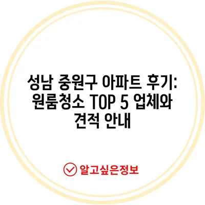 성남 중원구 아파트 후기: 원룸청소 TOP 5 업체와 견적 안내