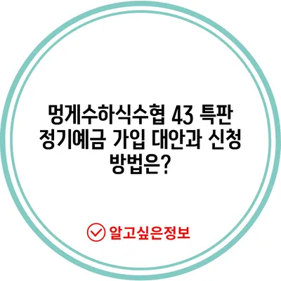 멍게수하식수협 43 특판 정기예금 가입 대안과 신청 방법은?