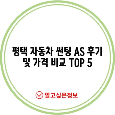 평택에서 자동차 썬팅 AS 서비스를 찾고 계신가요? 다양한 업체의 후기를 바탕으로 평택 자동차 썬팅 AS 가격 비교 TOP 5를 소개합니다. 이 글은 각 업체의 가격, 서비스 품질 갯수와 장단점을 자세히 분석하여, 보다 현명한 선택을 도울 것입니다. 따라서 평택에서 차량 썬팅 서비스를 받을 때 꼭 참고해 보시길 바랍니다!