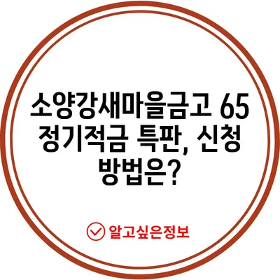 💡 소양강새마을금고 65 정기적금의 특판 신청 방법을 지금 알아보세요! 💡