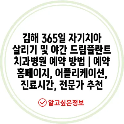 김해 365일 자기치아 살리기 및 야간 드림플란트 치과병원 예약 방법 | 예약 홈페이지, 어플리케이션, 진료시간, 전문가 추천 에 대해 자주 묻는 질문 TOP 5