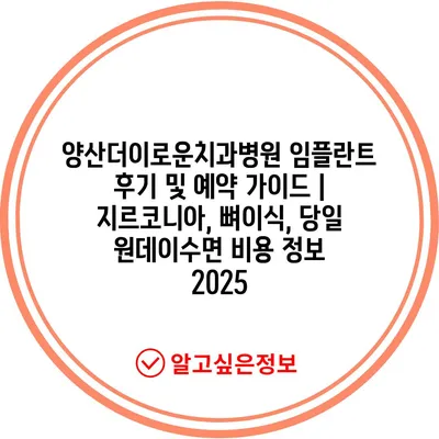 양산더이로운치과병원 임플란트 후기 및 예약 설명서 | 지르코니아, 뼈이식, 당일 원데이수면 비용 정보 2025에 대해 알아보겠습니다.