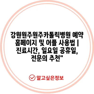 ✅ 원주카톨릭병원 예약 방법을 지금 바로 알아보세요!