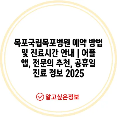 목포국립목포병원 예약 방법 및 진료시간 안내 | 어플 앱, 전문의 추천, 공휴일 진료 정보 2025