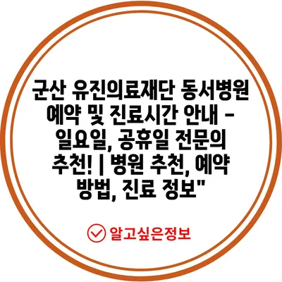 군산 유진의료재단 동서병원 예약 및 진료시간 공지 – 일요일, 공휴일 전연락 추천! | 병원 추천, 예약 방법, 진료 정보