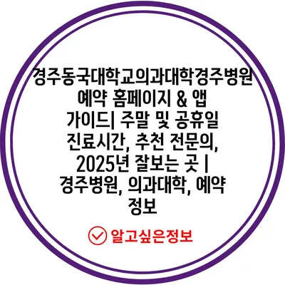 경주동국대학교의과대학경주병원 예약 홈페이지 & 앱 가이드| 주말 및 공휴일 진료시간, 추천 전문의, 2025년 잘보는 곳 | 경주병원, 의과대학, 예약 정보