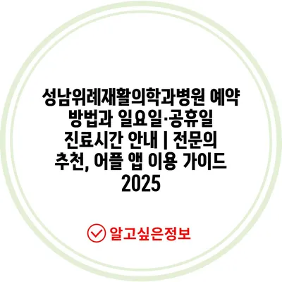 성남위례재활의학과병원 예약 방법과 일요일·공휴일 진료시간 안내 | 전문의 추천, 어플 앱 이용 가이드 2025
