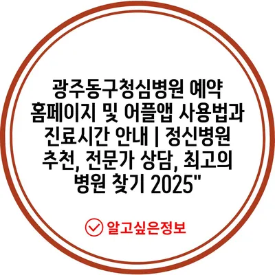 광주동구청심병원 예약 홈페이지 및 어플앱 사용법과 진료시간 안내 | 정신병원 추천, 전문가 상담, 최고의 병원 찾기 2025″