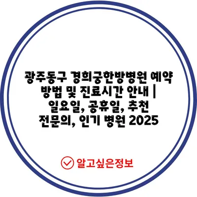 광주동구 경희궁한방병원 예약 방법 및 진료시간 공지 | 일요일, 공휴일, 추천 전연락, 인기 병원 2025 에 대해 자주 묻는 질문 TOP 5
