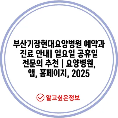 부산기장현대요양병원 예약과 진료 공지| 일요일 공휴일 전연락 추천 | 요양병원, 앱, 홈페이지, 2025는 여러분의 건강을 위해 꼭 필요한 정보입니다.
