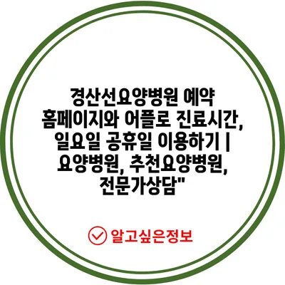 ✅ 경산선요양병원의 진료시간과 예약 방법을 지금 바로 알아보세요!