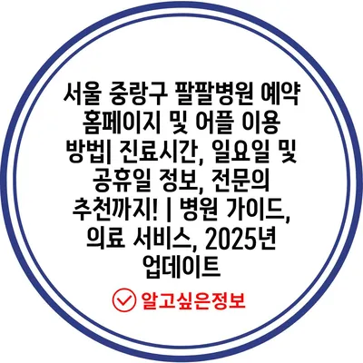 서울 중랑구 팔팔병원 예약 홈페이지 및 어플 이용 방법| 진료시간, 일요일 및 공휴일 정보, 전연락 추천까지! | 병원 설명서, 의료 서비스, 2025년 업데이트 에 대해 자주 묻는 질문 TOP 5