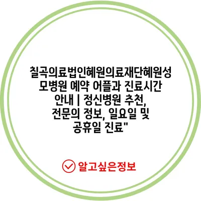 칠곡의료법인혜원의료재단혜원성모병원 예약 어플과 진료시간 공지 | 정신병원 추천, 전연락 정보, 일요일 및 공휴일 진료에 대해 자주 묻는 질문 TOP 5