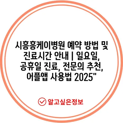 시흥흥케이병원 예약 방법 및 진료시간 공지 | 일요일, 공휴일 진료, 전연락 추천, 어플앱 사용법 2025