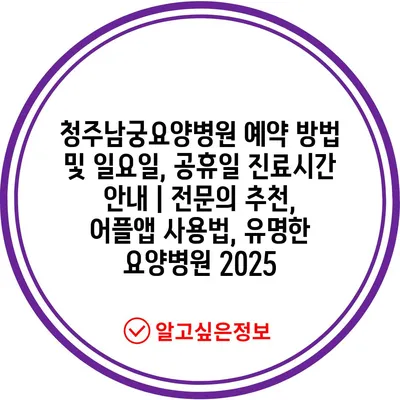 청주남궁요양병원 예약 방법 및 일요일, 공휴일 진료시간 공지 | 전연락 추천, 어플앱 사용법, 유명한 요양병원 2025 에 대해 자주 묻는 질문 TOP 5