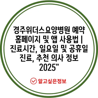 경주위더스요양병원 예약 홈페이지 및 앱 사용법 | 진료시간, 일요일 및 공휴일 진료, 추천 의사 정보 2025″ 에 대해 자주 묻는 질문 TOP 5
