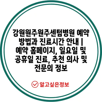 ✅ 강원원주센텀병원 예약 방법을 지금 바로 알아보세요!