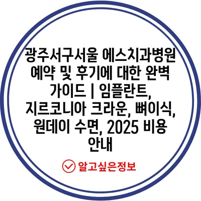 광주서구서울 에스치과병원 예약 및 후기에 대한 완벽 가이드 | 임플란트, 지르코니아 크라운, 뼈이식, 원데이 수면, 2025 비용 안내