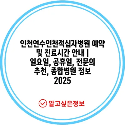 인천연수인천적십자병원 예약 및 진료시간 공지 | 일요일, 공휴일, 전연락 추천, 종합병원 정보 2025에 대해 알아보겠습니다.