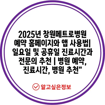 2025년 창원메트로병원 예약 홈페이지와 앱 사용법| 일요일 및 공휴일 진료시간과 전연락 추천 | 병원 예약, 진료시간, 병원 추천에 대해 자주 묻는 질문 TOP 5